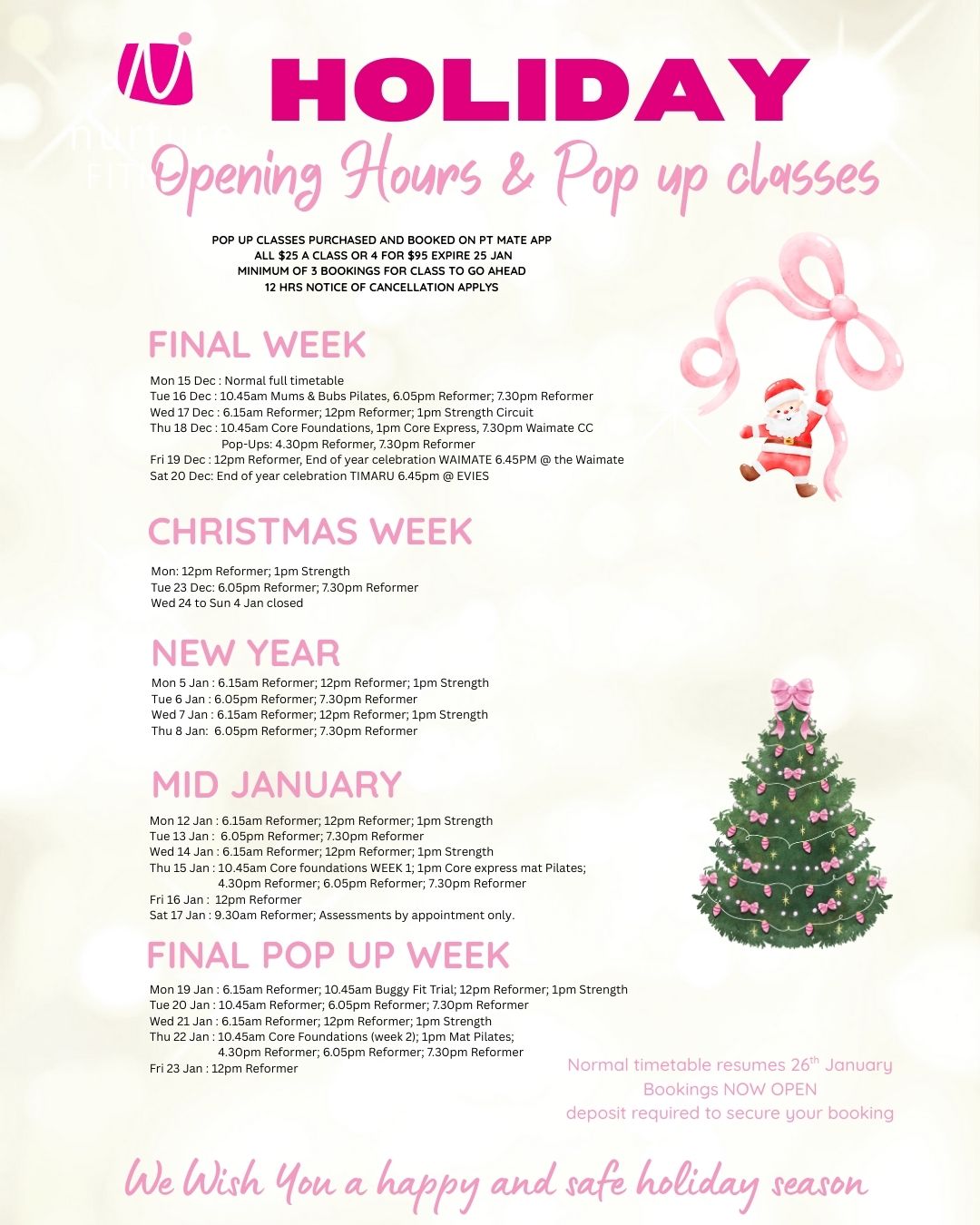 Explore the weekly schedule of classes and personal training sessions designed to support women at every stage of life. Whether you're looking to build strength, regain confidence after pregnancy, or stay active during pregnancy, Nurture Fitness offers a variety of options to suit your needs.